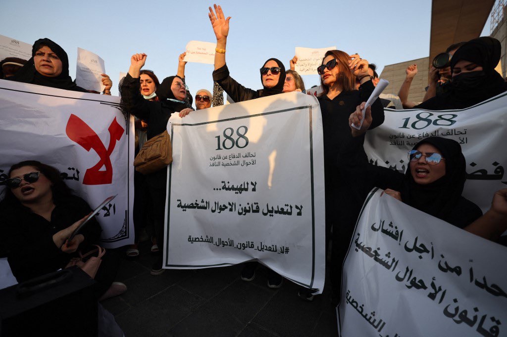 La Coalición 188, un grupo de activistas que defiende los derechos de las mujeres, ha organizado manifestaciones en Bagdad y otras ciudades. “Estas reformas son un ataque directo contra la dignidad y seguridad de las mujeres iraquíes”, expresaron en un comunicado. Mujeres y hombres han salido a las calles en protesta, y algunas mujeres parlamentarias han unido fuerzas para bloquear esta ley, aunque su avance en el Parlamento continúa.